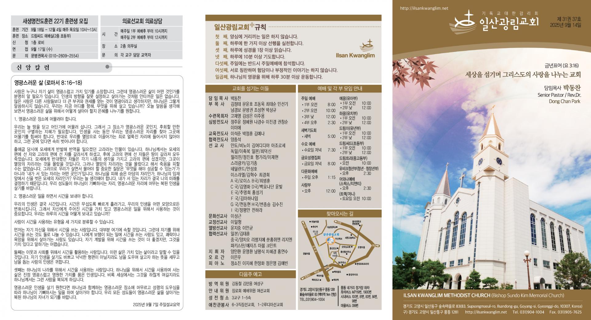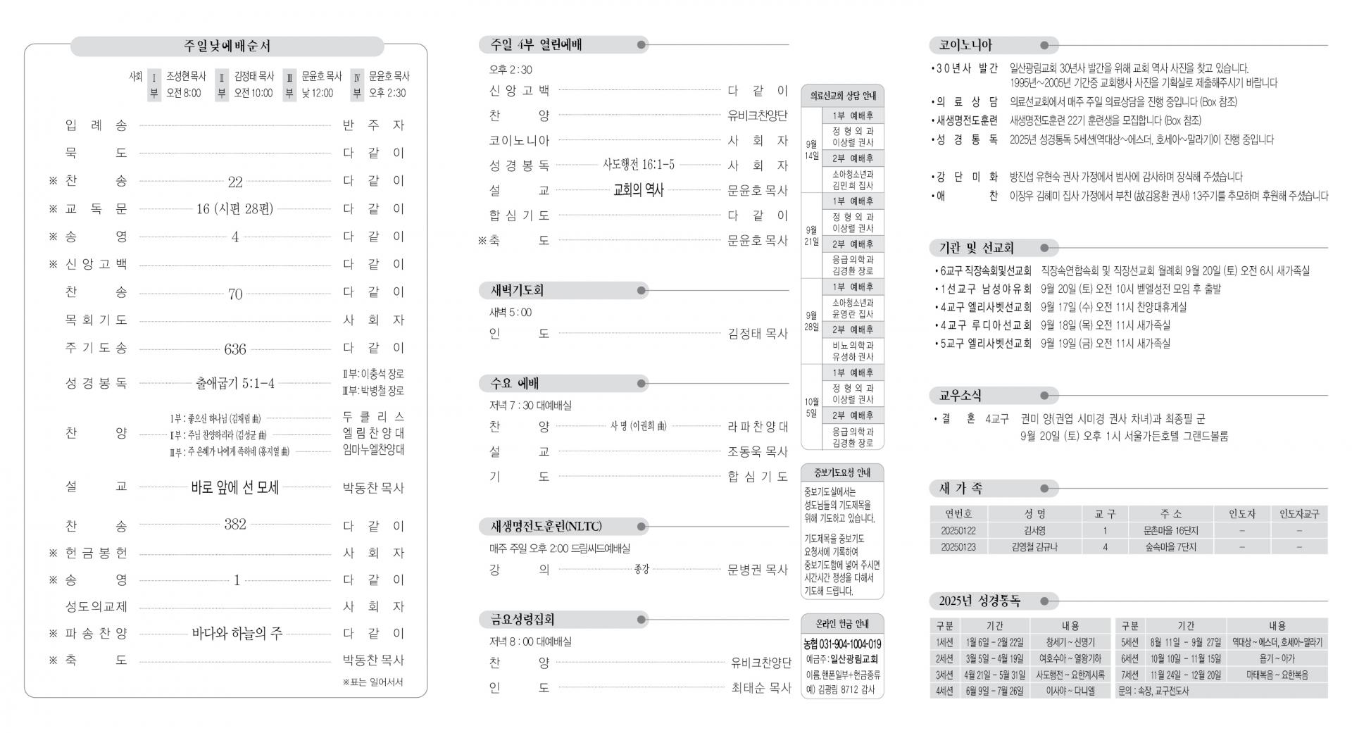 - 성경통독: 2025년 성경통독 5세션(역대상~에스더, 호세아~말라기)이 진행 중입니다.