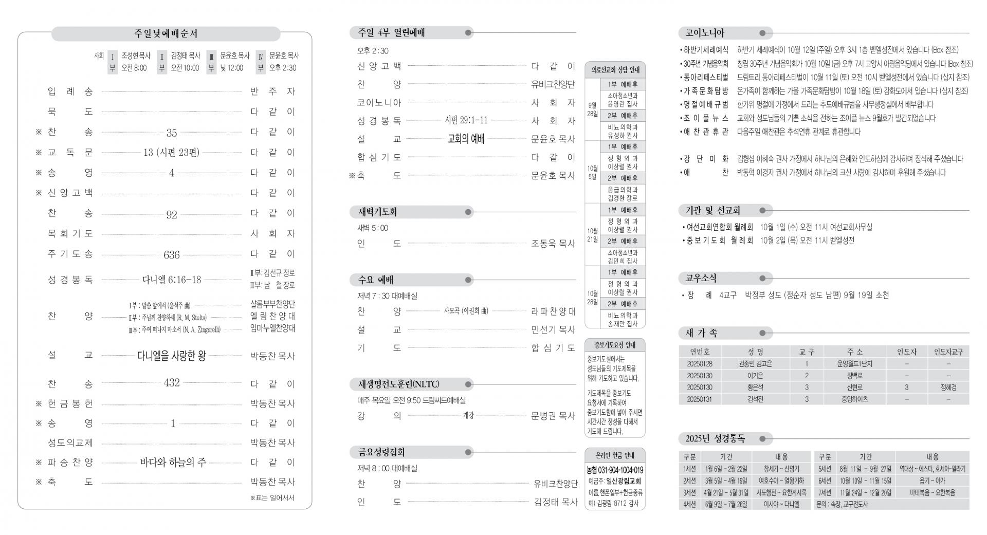 - 하반기세례예식: 하반기 세례예식이 10월 12일 (주일) 오후 3시 1층 벧엘성전에서 있습니다 (Box 참조)